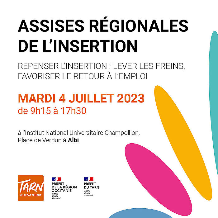 Le Département du Tarn se mobilise sur l'insertion et organise les Assises Régionales de l'Insertion mardi 4 juillet 2023 de 9h15 à 17h30 à l’Institut Universitaire Champollion, place de Verdun à Albi.
