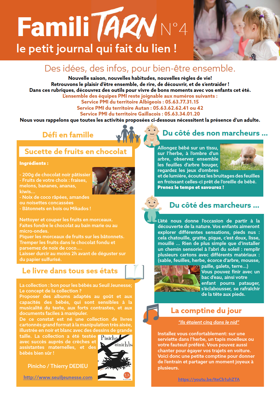 Nous vous rappelons que toutes les activités proposées ci-dessous nécessitent la présence d’un adulte.