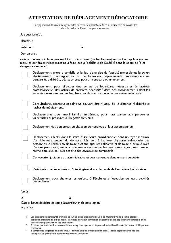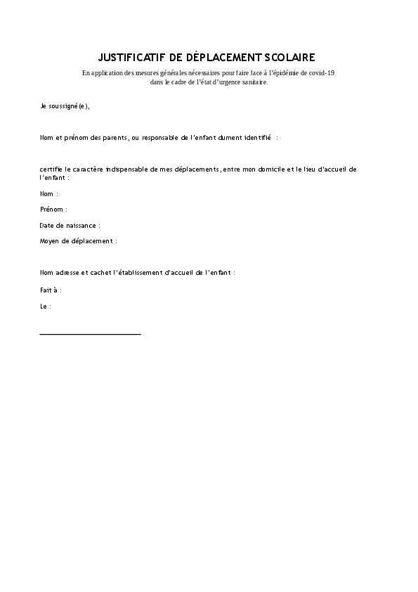 Si vous ne pouvez pas imprimer l'attestation, rédigez-la sur papier libre.