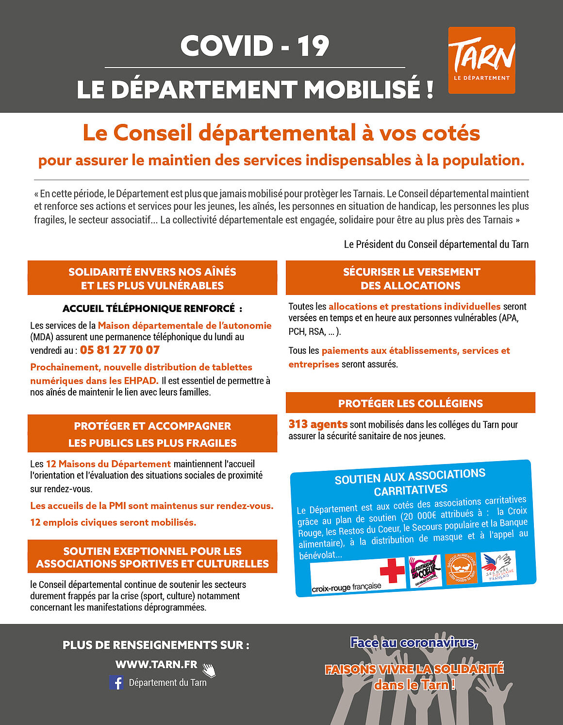 Le Conseil départemental du Tarn à vos cotés pour assurer le maintien des services indispensables à la population.