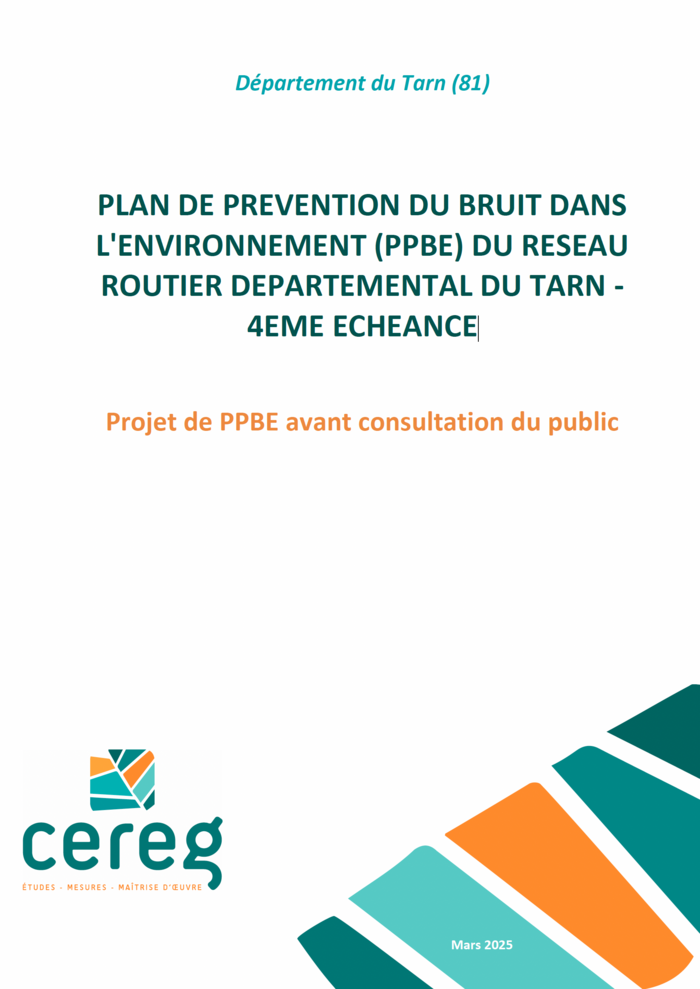 Plan de Prévention du Bruit dans l’Environnement (PPBE) du réseau routier départemental du Tarn (2025-2029) – 4ème échéance