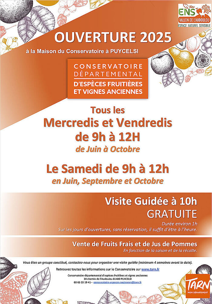A partir du 4 juin 2025, le Conservatoire départemental d’espèces fruitières et vignes anciennes vous accueille à la Maison du Conservatoire à Puycelsi.