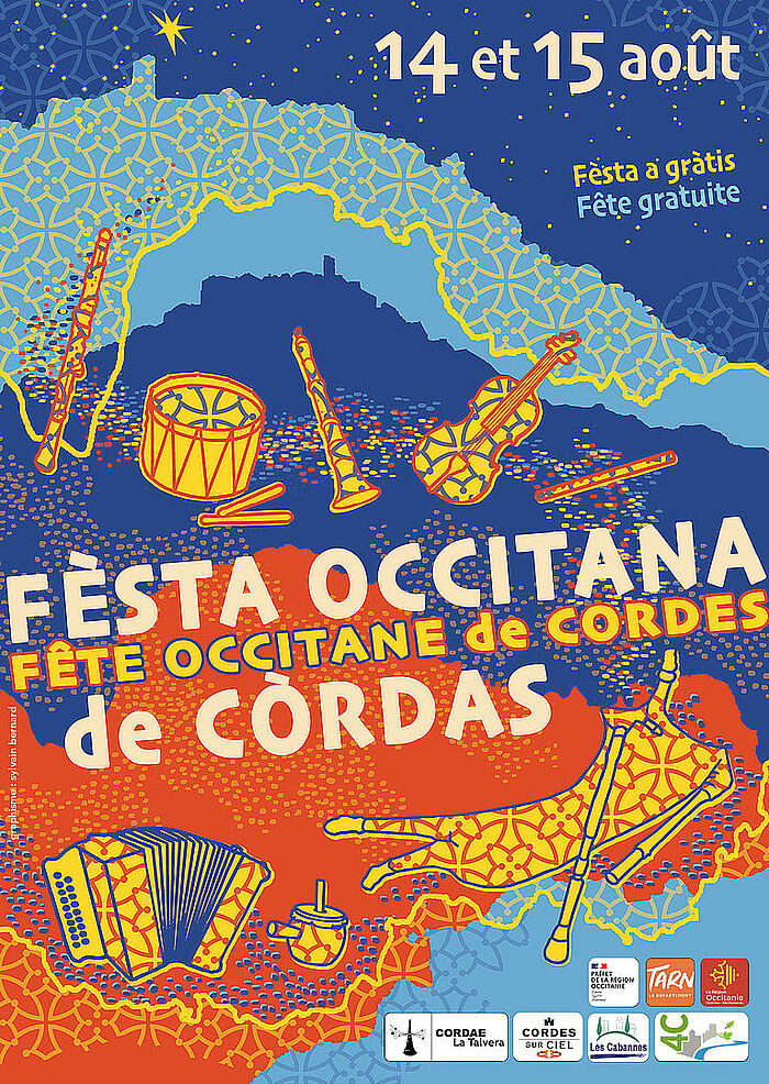 Cordes sur ciel fête la culture occitane avec musique, jeux, exposition, conférences, balade contée et salon du livre. La Creuse est le département invité cette année avec Farem tot petar, Les Violons de Nedde et La Talvera au grand bal final !