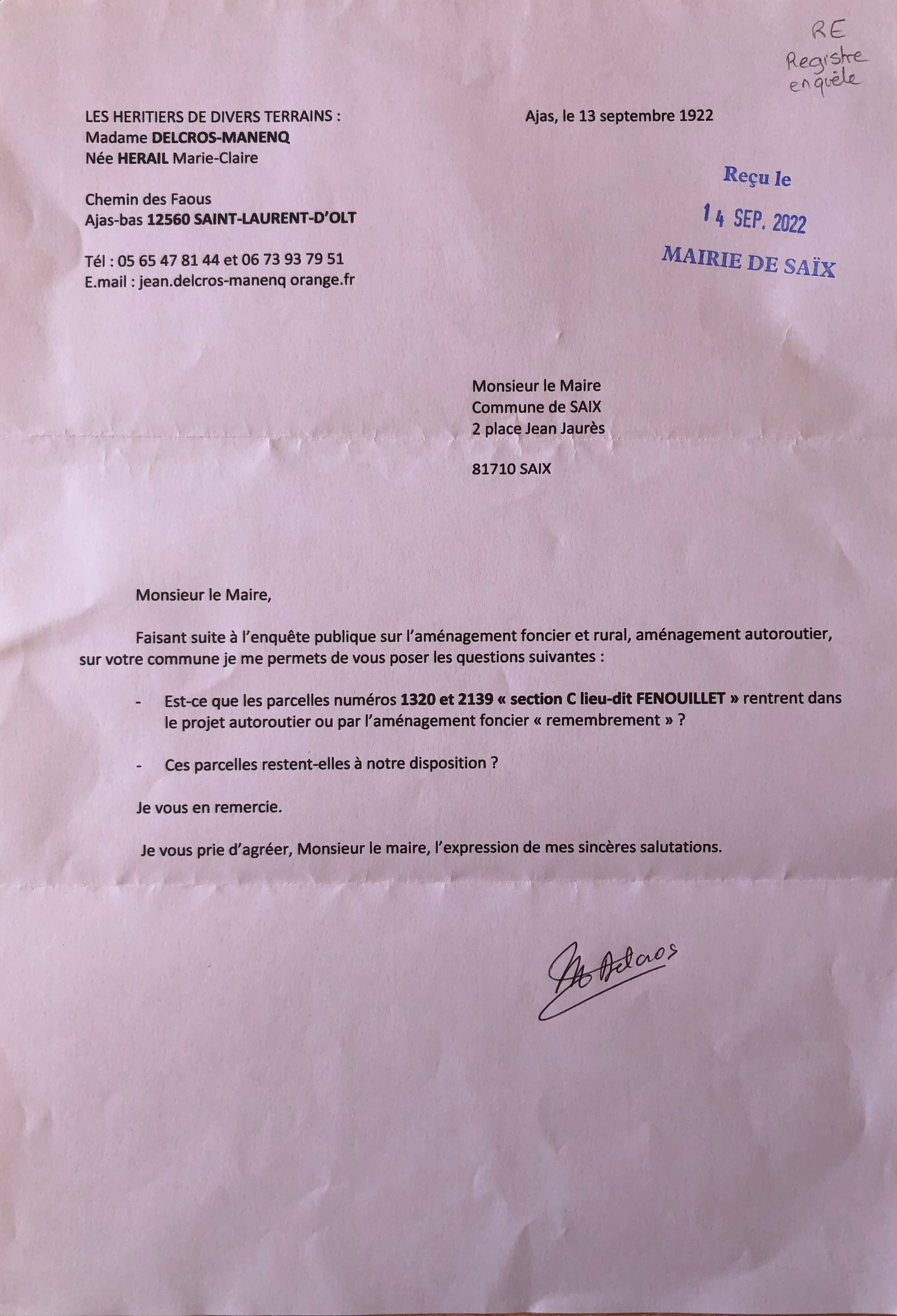 Résidant au 72 route de Sémalens, 81710 SAIX