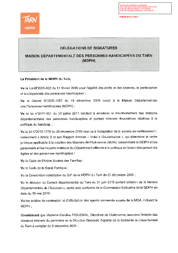 Arrêté de délégation de signature de la MDPH suite à l’intérim de M. Sébastien ANTUNES sur le périmètre de la MDPH.