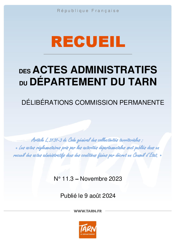 Recueil des Actes Administratifs - Novembre 2023 - Délibérations CP