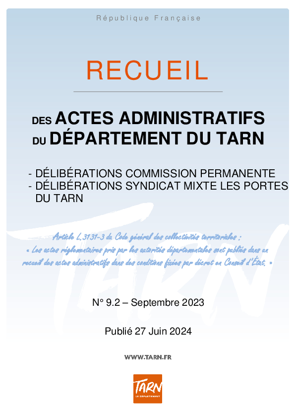 Recueil des Actes Administratifs Septembre 2023 - Délibérations