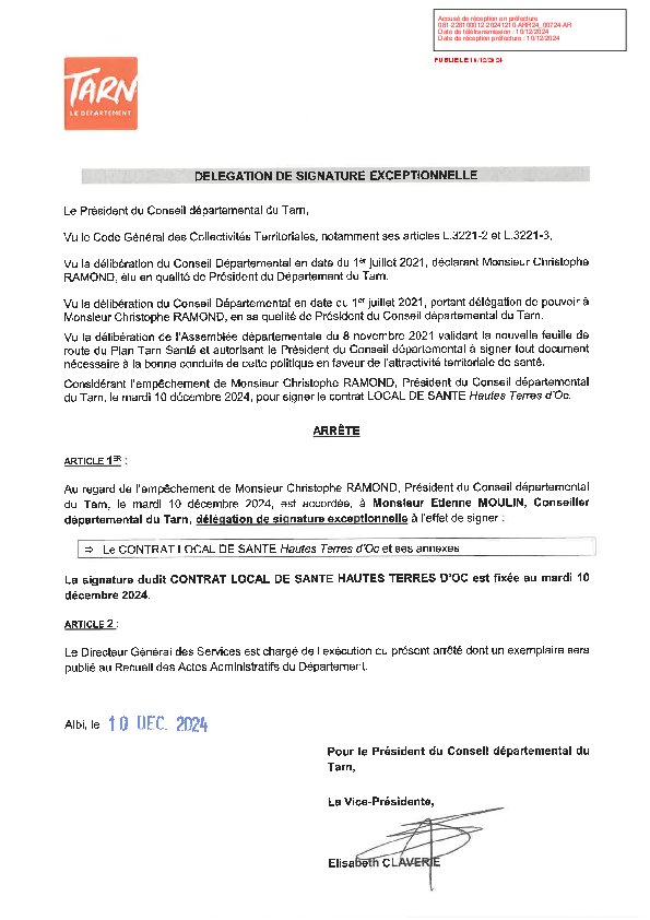 Délégation de signature exceptionnelle à Etienne Moulin