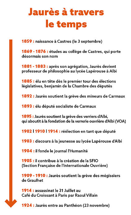Jean Jaurès, né à Castres le 3 septembre 1859, est mort assassiné le 31 juillet 1914 à Paris. Dès son enfance, puis par ses fréquents séjours dans sa maison de Bessoulet à Villefranche d’Albigeois, il n’a cessé de garder un contact avec la terre tarnaise.