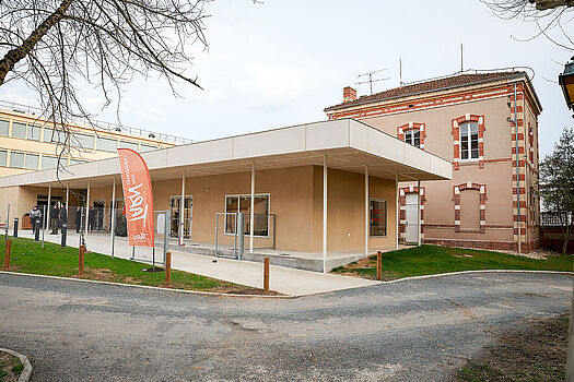 L’opération de réhabilitation a été menée par le cabinet d’architectes toulousain Harter, dans le souci de préserver le bâtiment du 19e et notamment sa façade, tout en intégrant une rénovation thermique et une intervention contemporaine sur les autres parties des locaux existants.