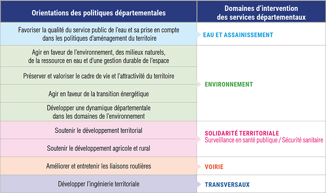 Les interventions des services internes sont effectuées dans le cadre des orientations de politiques départementales définies par l’Assemblée :