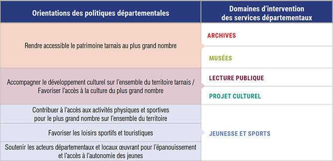 Toutes ces actions départementales sont réparties suivant deux thèmes de la politique générale du Département : cohésion territoriale et éducation, jeunesse, sport, culture et vie associative.