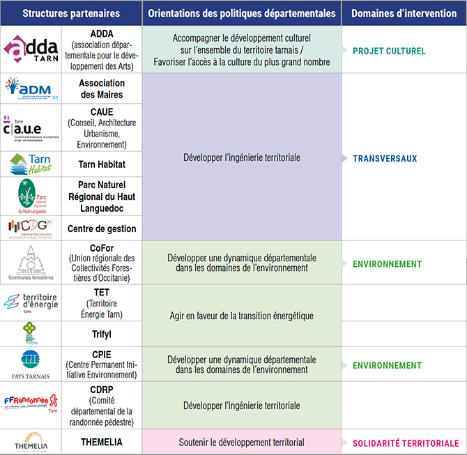 Il s’ajoute à ces domaines d’intervention en régie ceux assurés par les partenaires extérieurs présentés ci-après :
