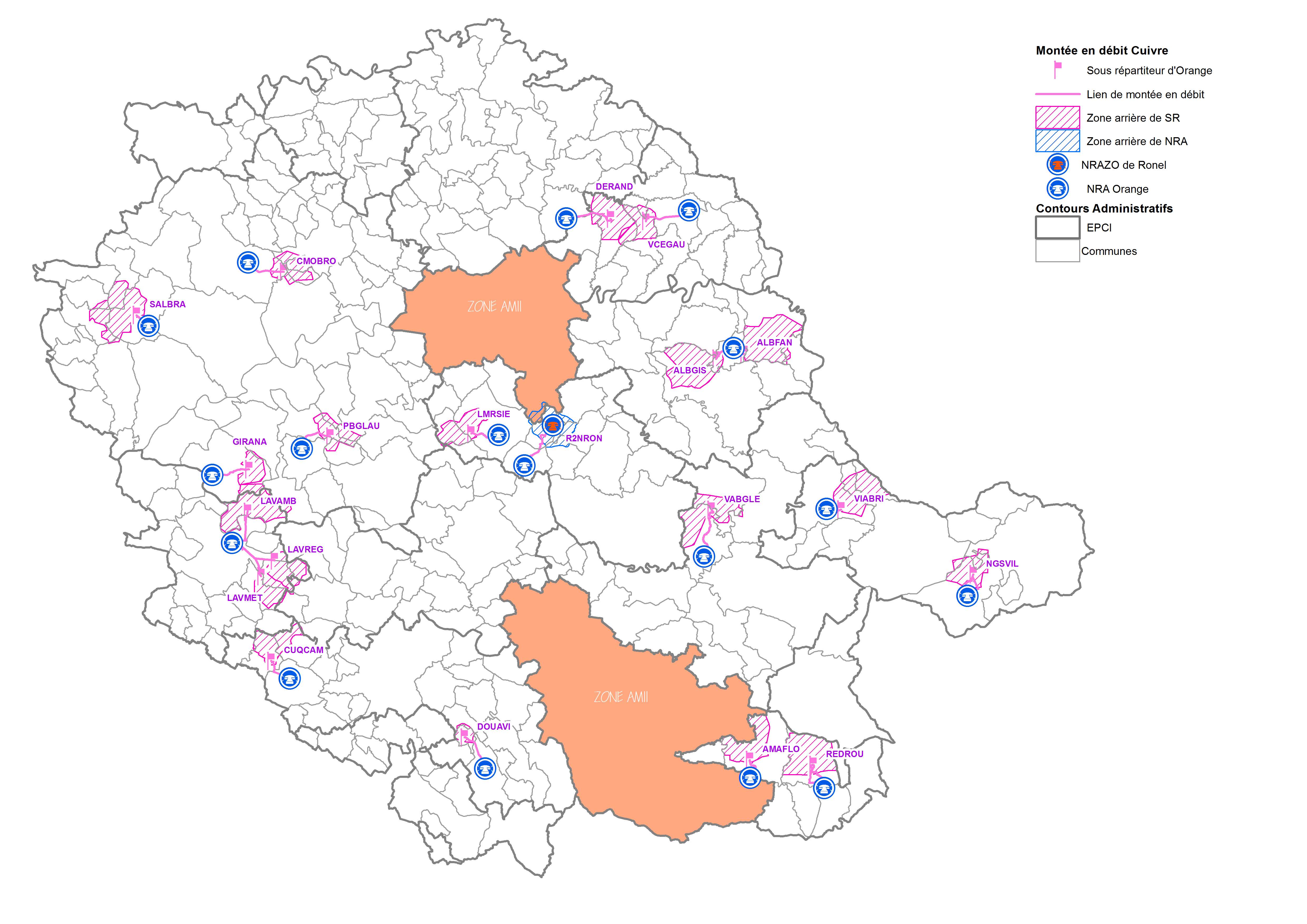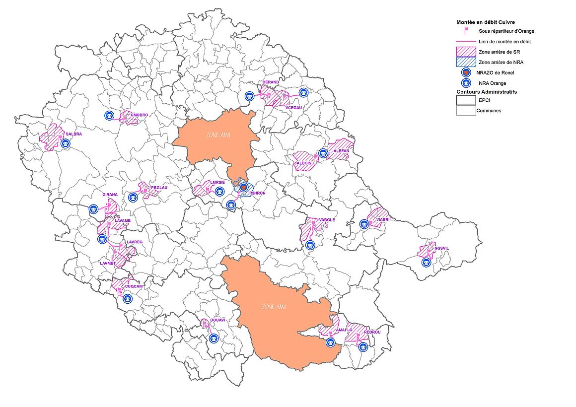 Il est à noter que ces dispositifs ne concernent pas tout le département : les agglomérations d’Albi et de Castres ne sont pas gérées par le Département (pour lesquelles le déploiement de la fibre optique dépend des opérateurs Orange et SFR).