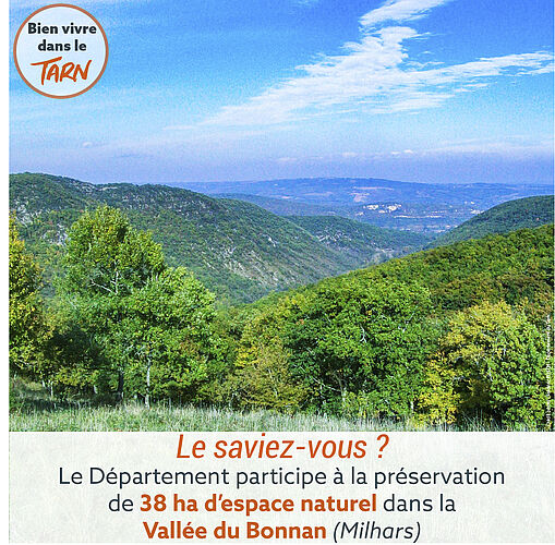 Propriétaire de près de 920 hectares de forêts (Massifs de Sivens, Sérénac, et Lauzeral). Le Département conduit des actions à des fins environnementales comme la conservation et protection des milieux forestiers, sociales en favorisant l'accueil du public ainsi que la découverte des milieux mais également économiques par une production importante de bois. L'entretien des sentiers de randonnées et l'aménagement des espaces récréatifs permettent de redonner un coup de pouce à l'attractivité de nos milieux forestiers tarnais. Le Département s'est engagé avec l'appui technique de l'association "Arbres et Paysages tarnais" sur un programme de replantation de haies champêtres, bosquets hors forêts, et de remise en état de haies naturelles existantes. Plusieurs actions ont été menées comme l'aide à la replantation et l'accompagnement de projets en agro-foresterie. Le Département est également en partenariat avec l'Office national des forêts pour promouvoir la gestion sylvicole et la surveillance de nos milieux arborés.