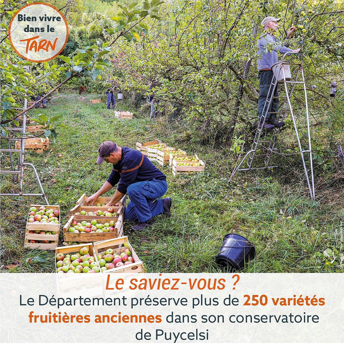 C’est en 1986 que le Conseil départemental du Tarn a créé le Conservatoire départemental d'espèces fruitières et vignes anciennes. Référencé Espace Naturel Sensible du Département du Tarn le Conservatoire met en œuvre des actions de sauvegarde, d’identification, d’évaluation et de valorisation de notre richesse biologique. Il s’inscrit dans une démarche de développement durable.