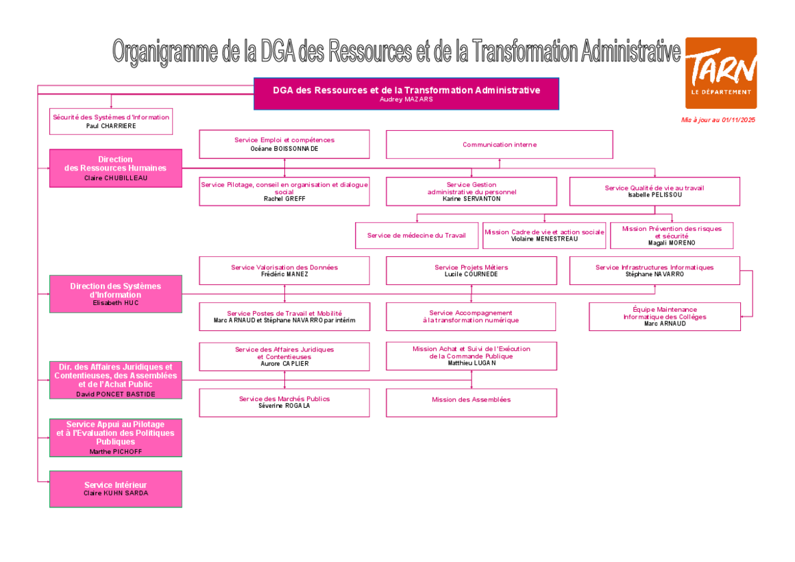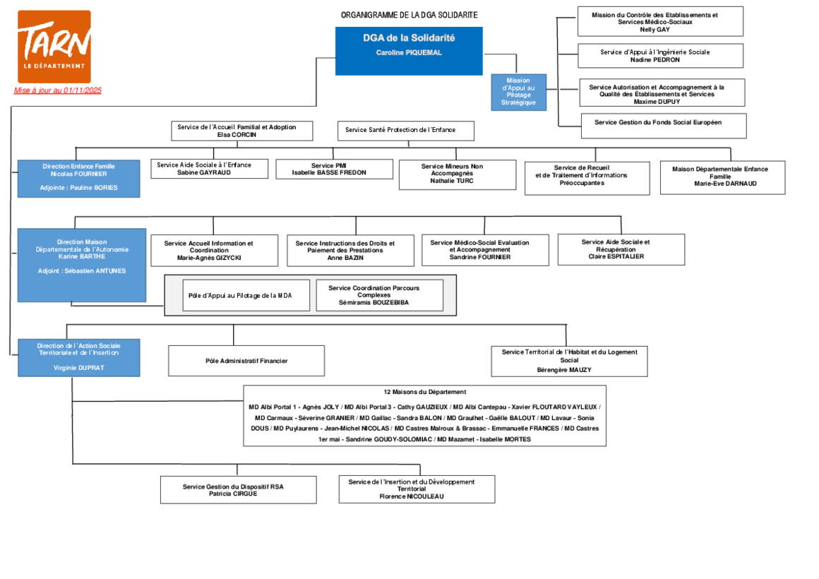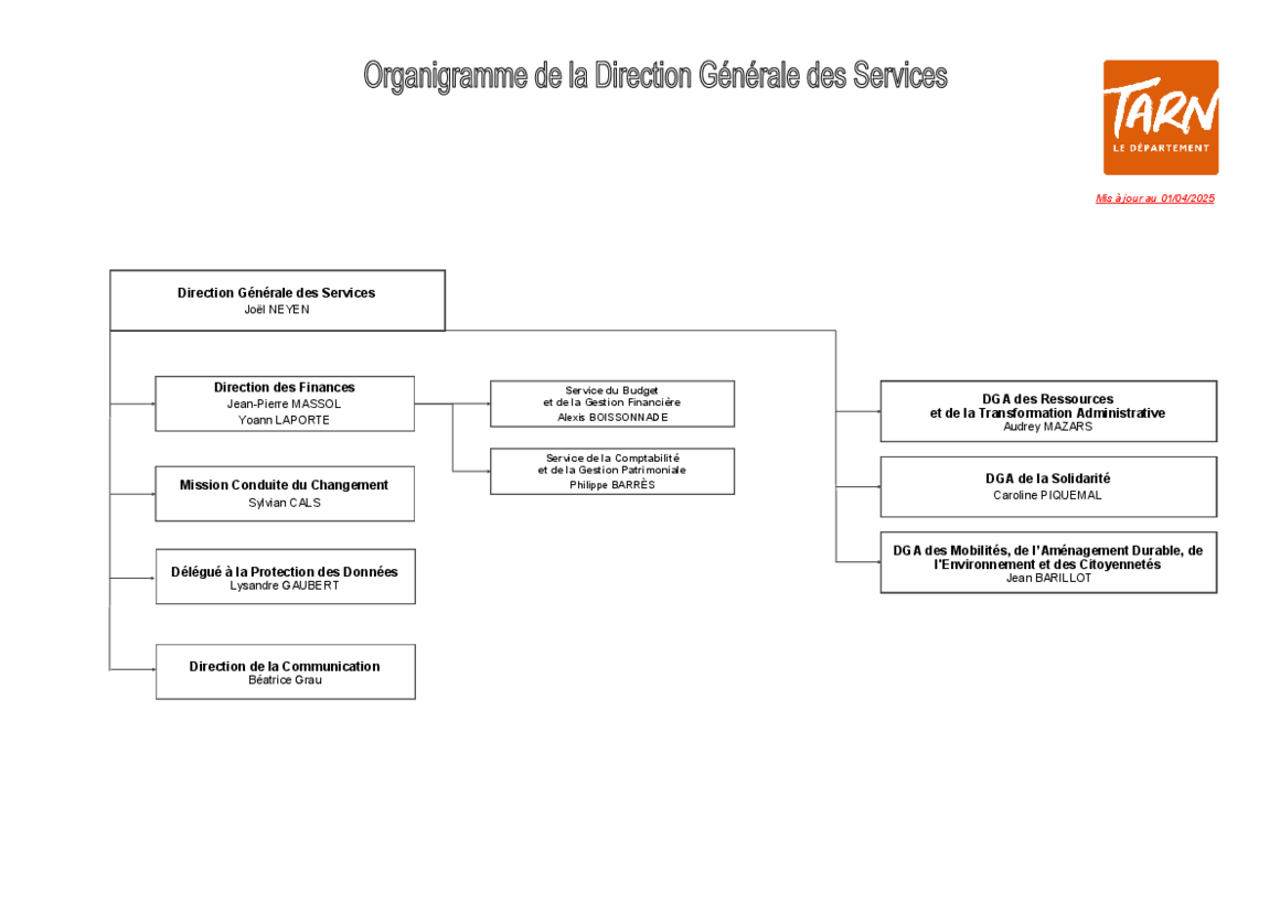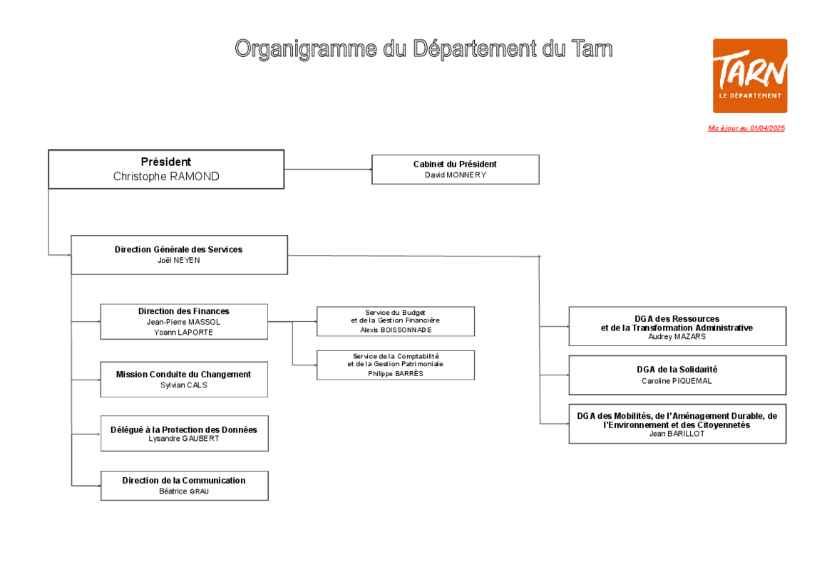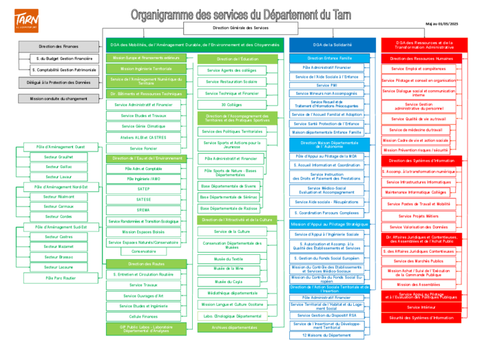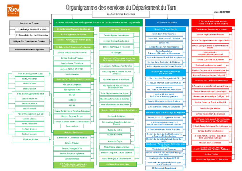 Organigramme des services du Département du Tarn